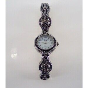 LA Express Silver Tone Marcasite Filigree Ladies Wrist Watch Works Well
