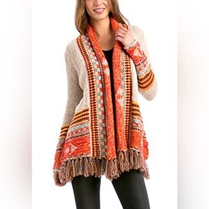 LA FEE VERTE for Anthropologie Multicolor Fringe Open Cardigan Sweater size XS