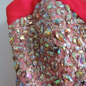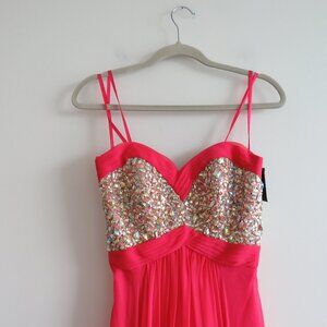 LA FEMME 18733 Beaded Bodice Chiffon Strapless Maxi Prom Dress Watermelon 4 NWT