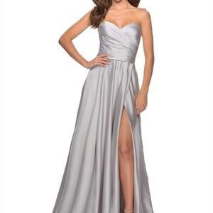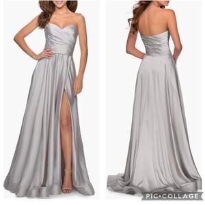 LA FEMME 28608 Strapless Ballgown in silver. Women’s size 2. NWOT