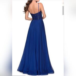 LA FEMME 28664 DRESS Gown Lace V-neck blue. NWT size 0