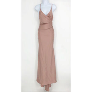 LA FEMME 29848 Jersey Long Gown 2 Pink Mauve Faux Wrap V Neck Prom Dress NWT