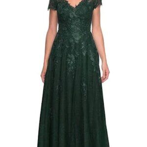 ✨ LA FEMME 30168 – Dark Green A-Line Formal Dress (Size 10) ✨