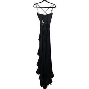 LA FEMME Black Flutter Slit Trumpet Gown - NWT