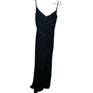 LA FEMME Black Ruched Cutout Back Jersey Trumpet Slit Gown Dress Size 8z