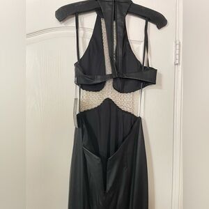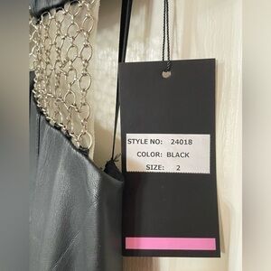 LA FEMME Black Vegan Leather Metal Chain Dress