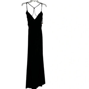 LA FEMME Cross Back Satin Jersey Trumpet Gown 28206 Black Size 6 NWT