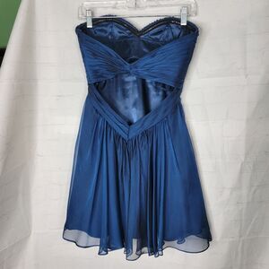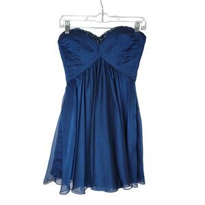 LA FEMME Homecoming Royal Blue Chiffon Sheer Flowy Strapless Dress Size 2