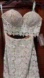 Gorgeous two piece lace gown with a nude lining and mermaid skirt. The top has a corset style appearance. Back zipper closure.