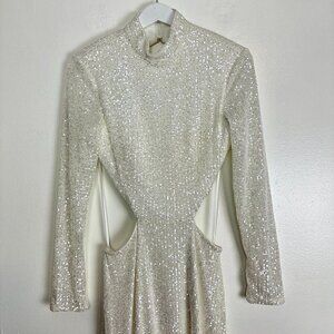 LA FEMME Sequin Long Sleeve Cutout Gown in White Size US 10