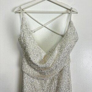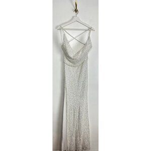 LA FEMME Sequin Sleeveless Gown in White Size US 10