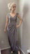 LA FEMME Surplice Off The Shoulder Column Gown In Pewter Size 0 NEW