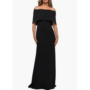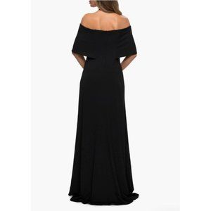 LA FEMME Womens Size 10 OFF THE SHOULDER GOWN JERSEY maxi DRESS Gown BLACK 28209
