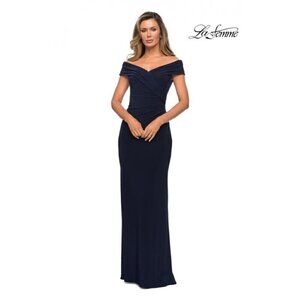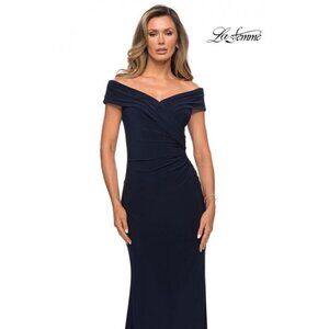 LA FEMME Womens Size 18 Navy 27959 Off Shoulder Formal Jersey Gown Dress New