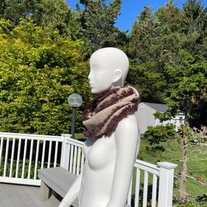LA FIORENTINA 100% GENUINE RABBIT FUR INFINITY CAMEL AND BROWN W/GOLD METALLIC SCARF