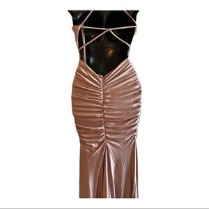La Femme Shiny Jersey Trumpet Gown- mauve nwt. From
