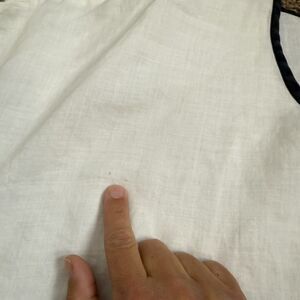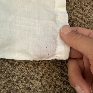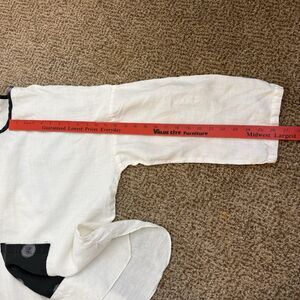 Shirt has some small flaws. 2 spots of mild staining and very small pinholes on sleeve of shirt. Please see picture noted. In otherwise good used condition. Please see pictures for measurements.