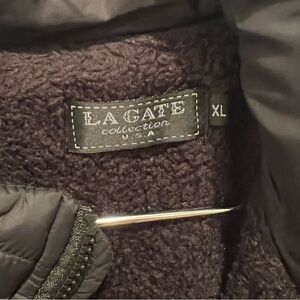 Stylish and versatile La Gate men's black puffer vest. Features quilted design, full zip front, and three secure zip pockets. Great for layering in cool weather. Pre-owned, in excellent condition.