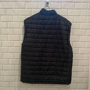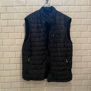 Stylish and versatile La Gate men's black puffer vest. Features quilted design, full zip front, and three secure zip pockets. Great for layering in cool weather. Pre-owned, in excellent condition.