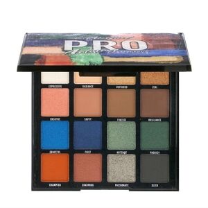 Explore endless looks with the Pro Eyeshadow Palette. Featuring a range of vibrant colors, including blue, green, orange, and gray, this palette is perfect for any occasion. Unleash your creativity with high-pigment shades.