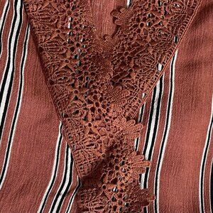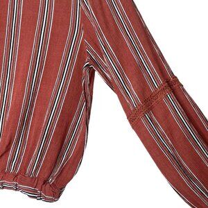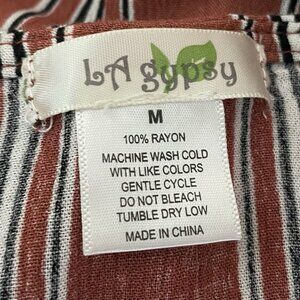 LA Gypsy Boho Blouse Size Medium Striped Peasant V-Neck Faux Wrap Long Sleeves