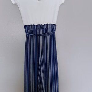 Cute and comfortable white and blue jumpsuit by LA Gypsy. Worn only once. In excellent condition.
