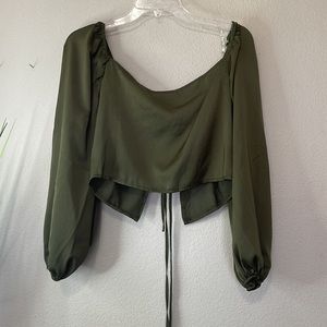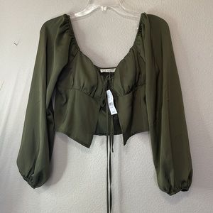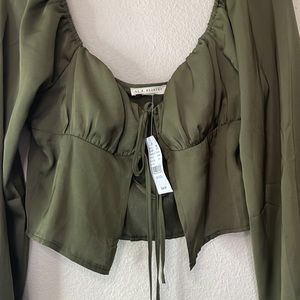 LA HEARTS TIE FRONT LONG SLEEVE SATIN TOP NWT