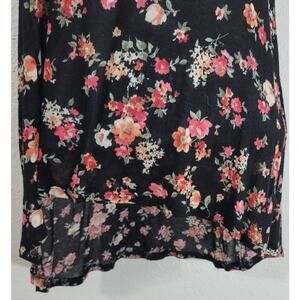 LA Hearts Black Pink Floral Print Tank Top Medium Crochet Back Straps Flowy Soft
