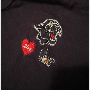 Style: Short Sleeved T-shirt with Small Embroidered Black Panther Red Slay Heart & Pack of Smokes