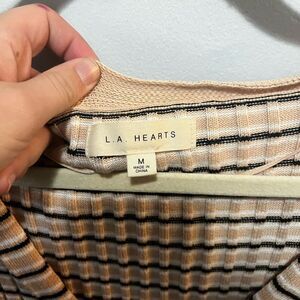 L.A. Hearts Black and Tan Striped Cropped Button Sweater M