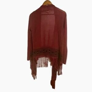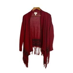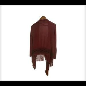 LA Hearts Cardigan Womens Small Open Burgundy with Fringe Small