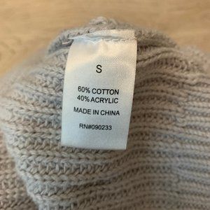 Size small grey sweater with a lace-up detailing on the shoulders. The sweater has an oversized look and sits slightly off the shoulders. Hardly worn and in good condition.
