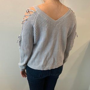 LA Hearts Grey Lace-Up Cold Shoulder Sweater