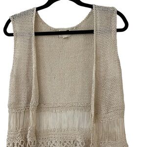 LA Hearts Ivory Fringe Crochet Vest, Size S