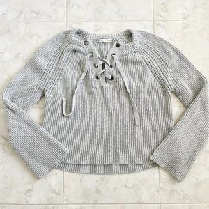 L.A. Hearts Lace Up V-Neck Gray Pullover Sweater Women Medium (M)