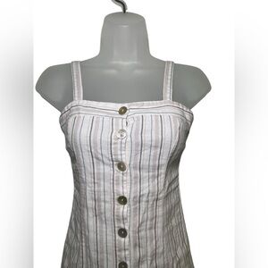 Keywords: LA Hearts striped mini dress, linen blend sundress, adjustable strap dress, button front summer dress, lightweight casual dress, LA Hearts size small