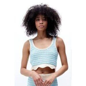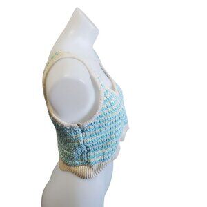 LA Hearts Lovely Blue Cream Cropped Sweater Tank Top Scalloped Hem Med