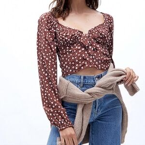 L.A Hearts Pacsun Brown Floral Long Sleeve Crop Top