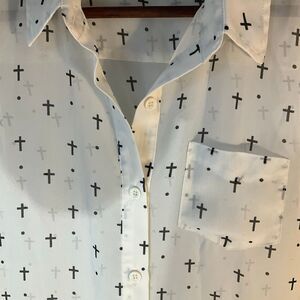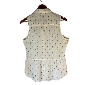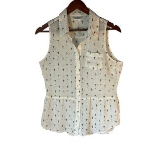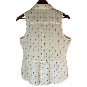 LA Hearts Sheer Peplum Sleeveless Button Up. Ivory with Crosses. Size M