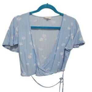 A cute wrap crop blue floral flutter sleeve top by LA Hearts in size XS.