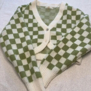L.A. Hearts white/green checkered long sleeved short waisted two button sweater
