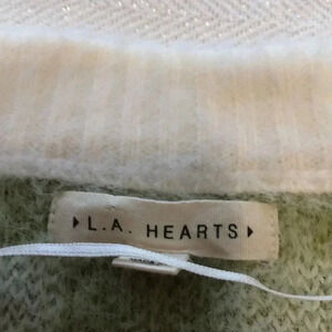 L.A. Hearts green/white long sleeved shirt waisted two button sweater. Measurements are 17” from armpit to armpit and 15” in length. Size XS