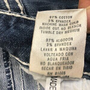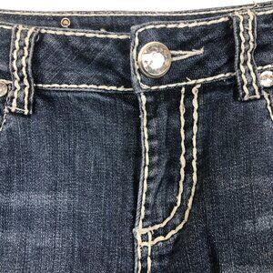 L.A. Idol Womens Denim Capris Dark Wash Flap Pockets Embellished with crystals and studs. Large crystal button in front.