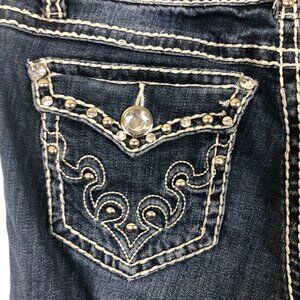 L.A. Idol Denim Capris Sz 9 Jrs Low Rise Dark Wash Flap Pockets Embellished
