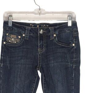 LA Idol Jeans Womens Size 5 Embellished Rhinestone Flap Pockets W29 L34
