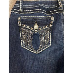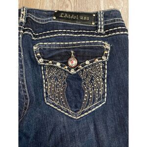 LA Idol Mid Rise Capri Jeans Rhinestone Embroidered Women’s Junior’s Sz 15