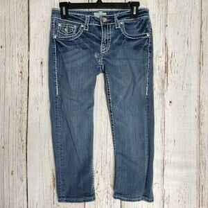 LA Idol USA Cropped Jeans Junior Size 5 Blue Denim Low Rise Cotton Y2K RIPPED