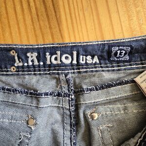 LA Idol Women Flare Jeans Bling Size 13 White Stitch Stretchy Distressed Y2K USA