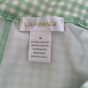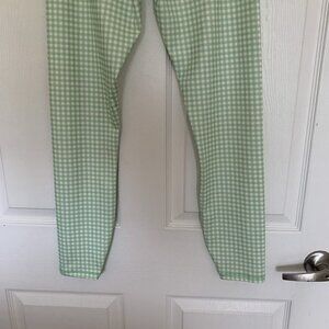 LA + Image Women’s Medium Leggings Green White Gingham Pants Excercise