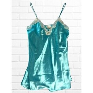 L.A. Intimates Blue Slip Dress Medium Flower Lace Satin